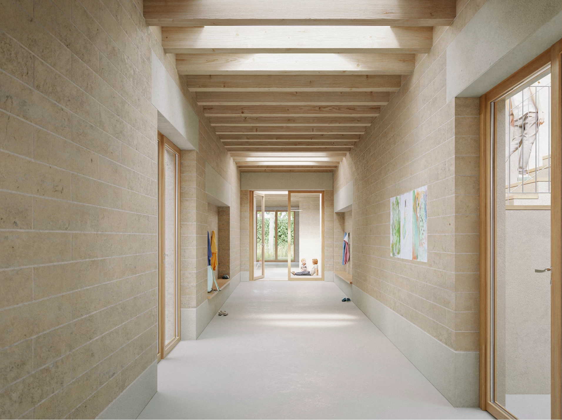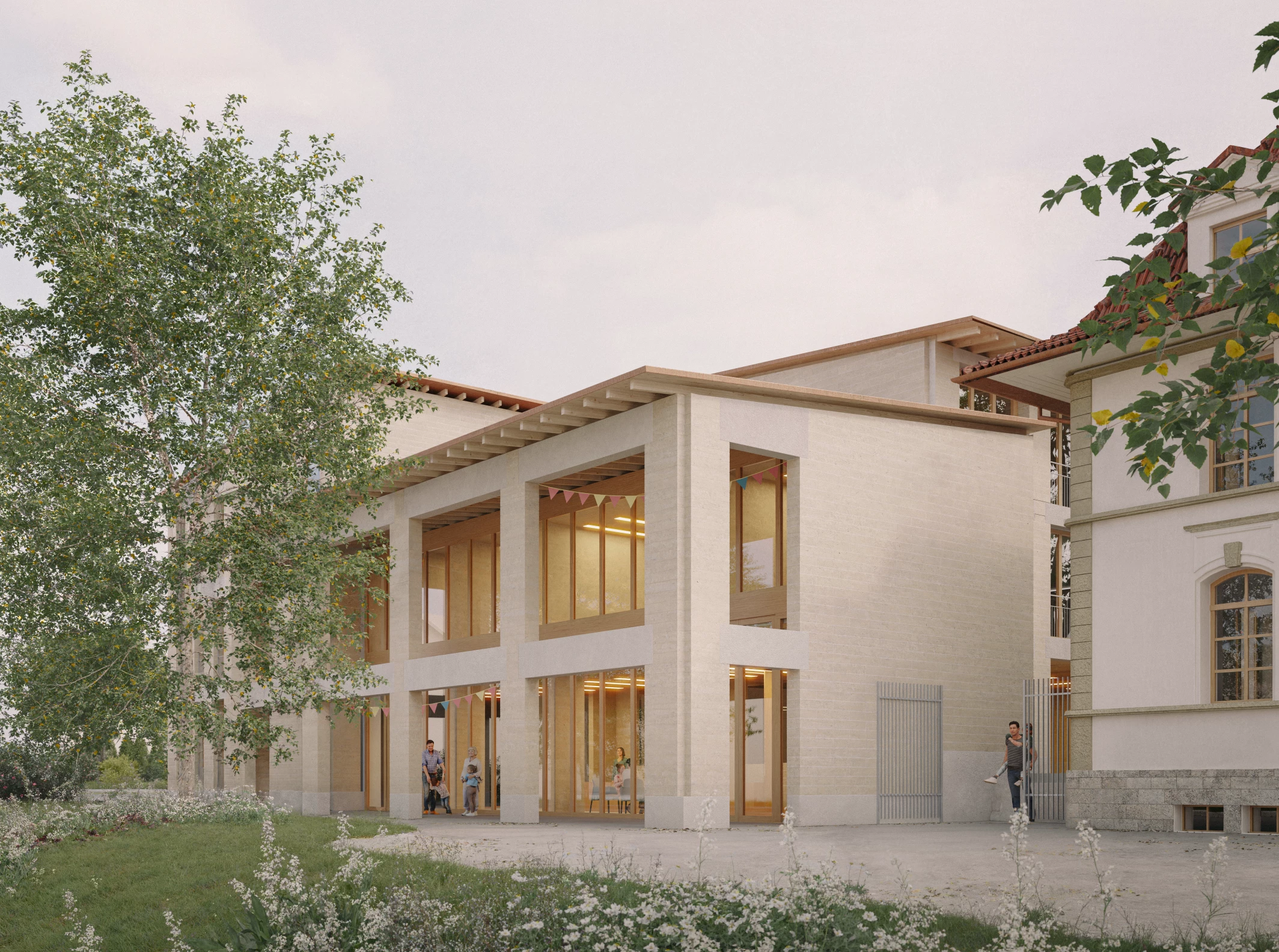 Wir freuen uns, unsere Begleitung fortzuführen, insbesondere bei der Entwicklung von tragenden Wänden aus Lehmziegeln, die Geschosse aus lokalem Massivholz aussteifen werden. Unser Büro wird zudem mit der Entwicklung des Wiederverwendungskonzepts für das bestehende, rückzubauende Gebäude beauftragt.