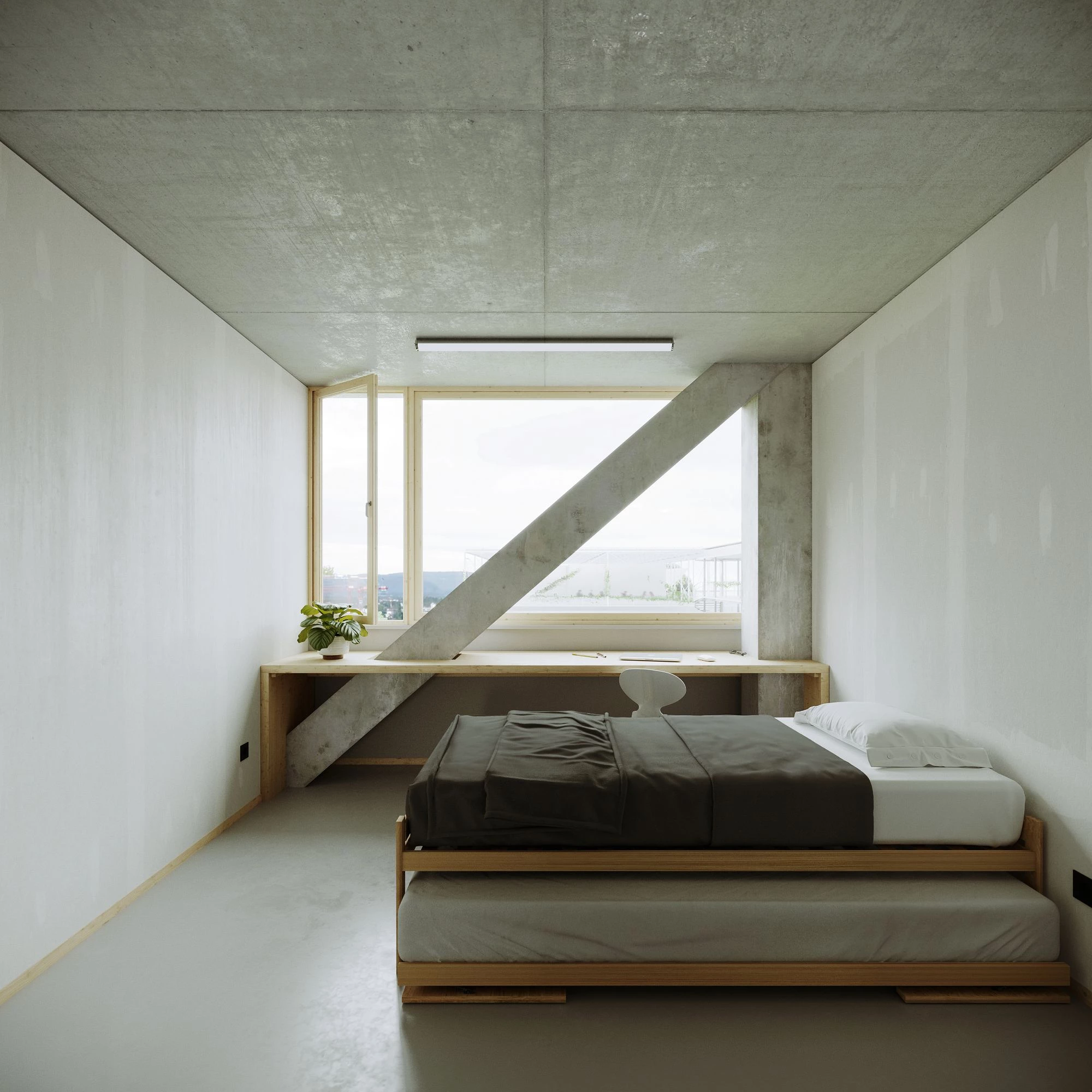 Durch die Optimierung der Spannweiten konnten die Deckendicken auf 25 cm reduziert werden. Die Stabilisierung erfolgt über Diagonalen in der Fassade, wodurch CO₂-intensive Kerne vermieden werden. Die umfassenden Optimierungen und das statische Konzept reduzieren die benötigte Materialmenge und damit den ökologischen Fussabdruck des Gebäudes.